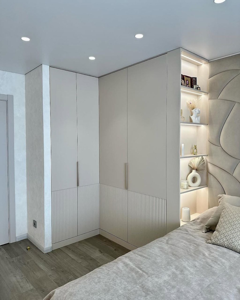 - Индивидуальный подход: вы получаете шкаф, созданный специально под вашу спальню, с учетом всех пожеланий по дизайну, материалам и наполнению.